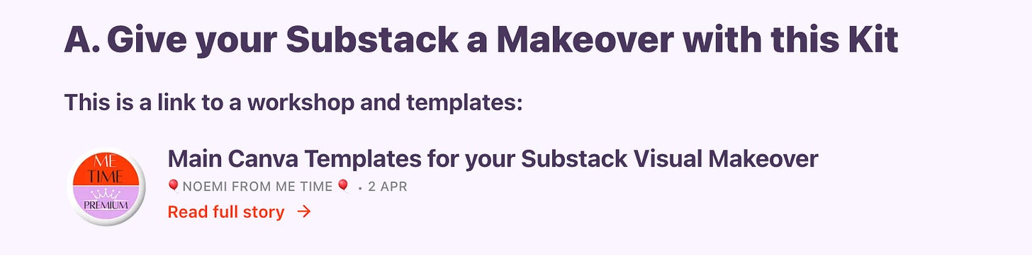 As I mentioned, if you are Me Time Premium Subscriber you have access to my Canva Templates Kit from the Learn Substack Fast Lab. Look for the “makeover” section and happy image creating! As your other Me Time Premium benefit, DM me if you have questions about the content or the template.