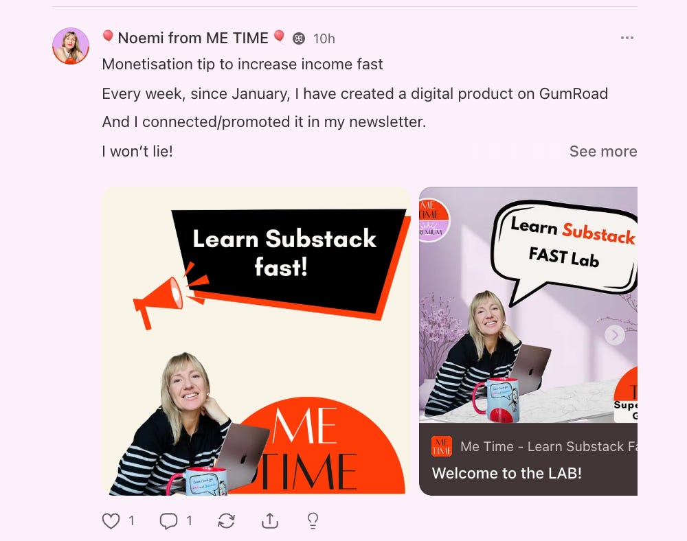 STOP THE SCROLL: You have 3 seconds to stop the scroll. If you use a random image for your article, then share it on notes… people may not even notice it’s from you. They may be in a rush. Now look at my note. They know in 2 seconds who it is from and what it’s about.